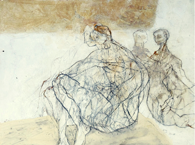 Innerer Dialog, 2023, Tusche, Acryl, Bleistift auf Bütten
